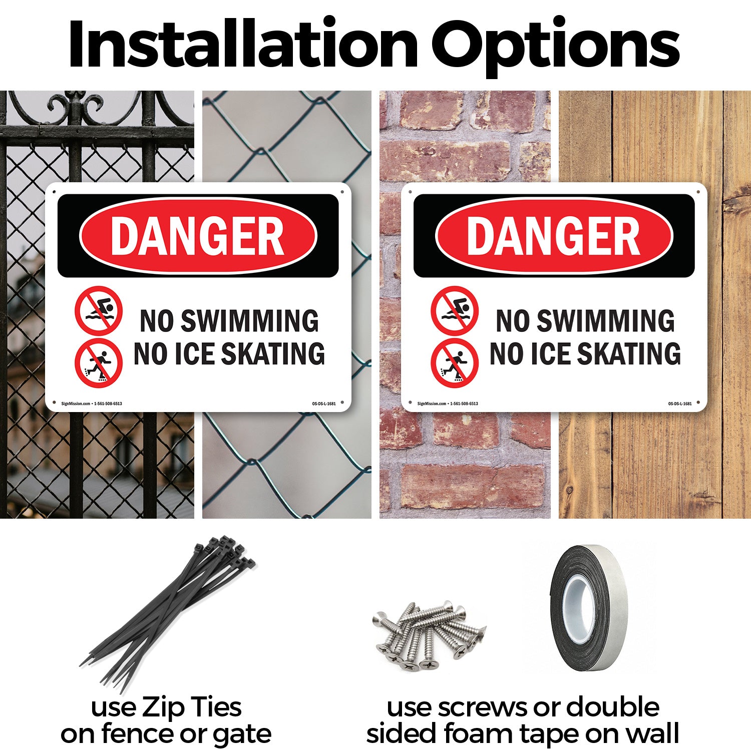 A working OSHA/ANSI safety sign that reads clean at distance and holds up outside. Header colors and signal words follow Z535 standards. High contrast. No glare.