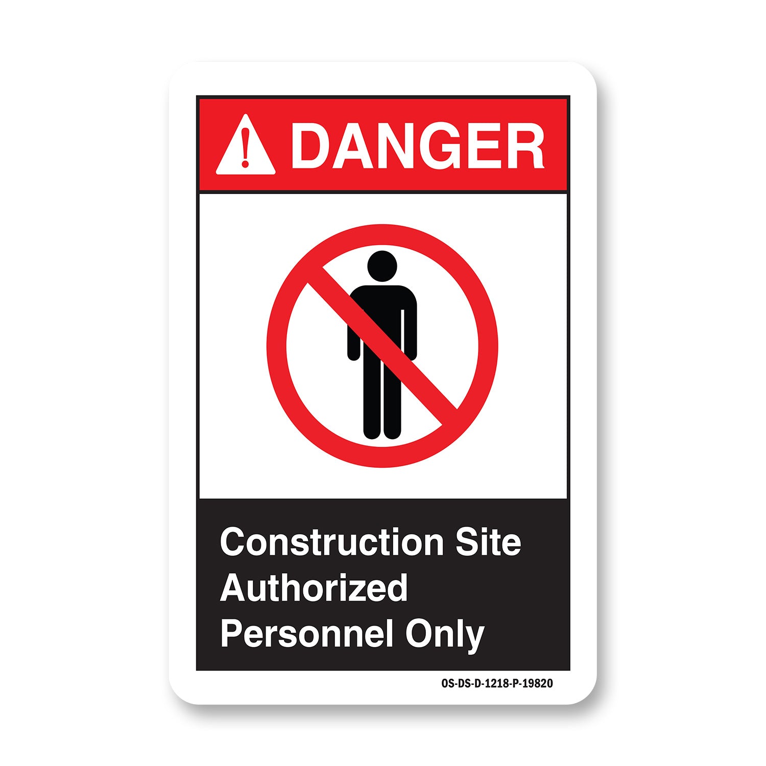 A working OSHA/ANSI safety sign that reads clean at distance and holds up outside. Header colors and signal words follow Z535 standards. High contrast. No glare.