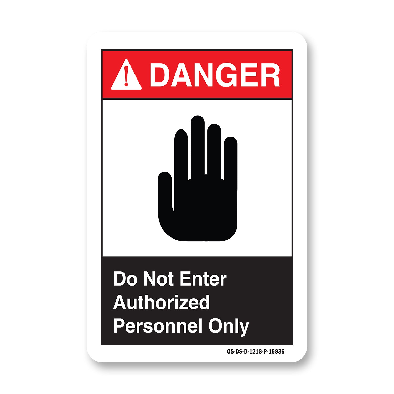 A working OSHA/ANSI safety sign that reads clean at distance and holds up outside. Header colors and signal words follow Z535 standards. High contrast. No glare.