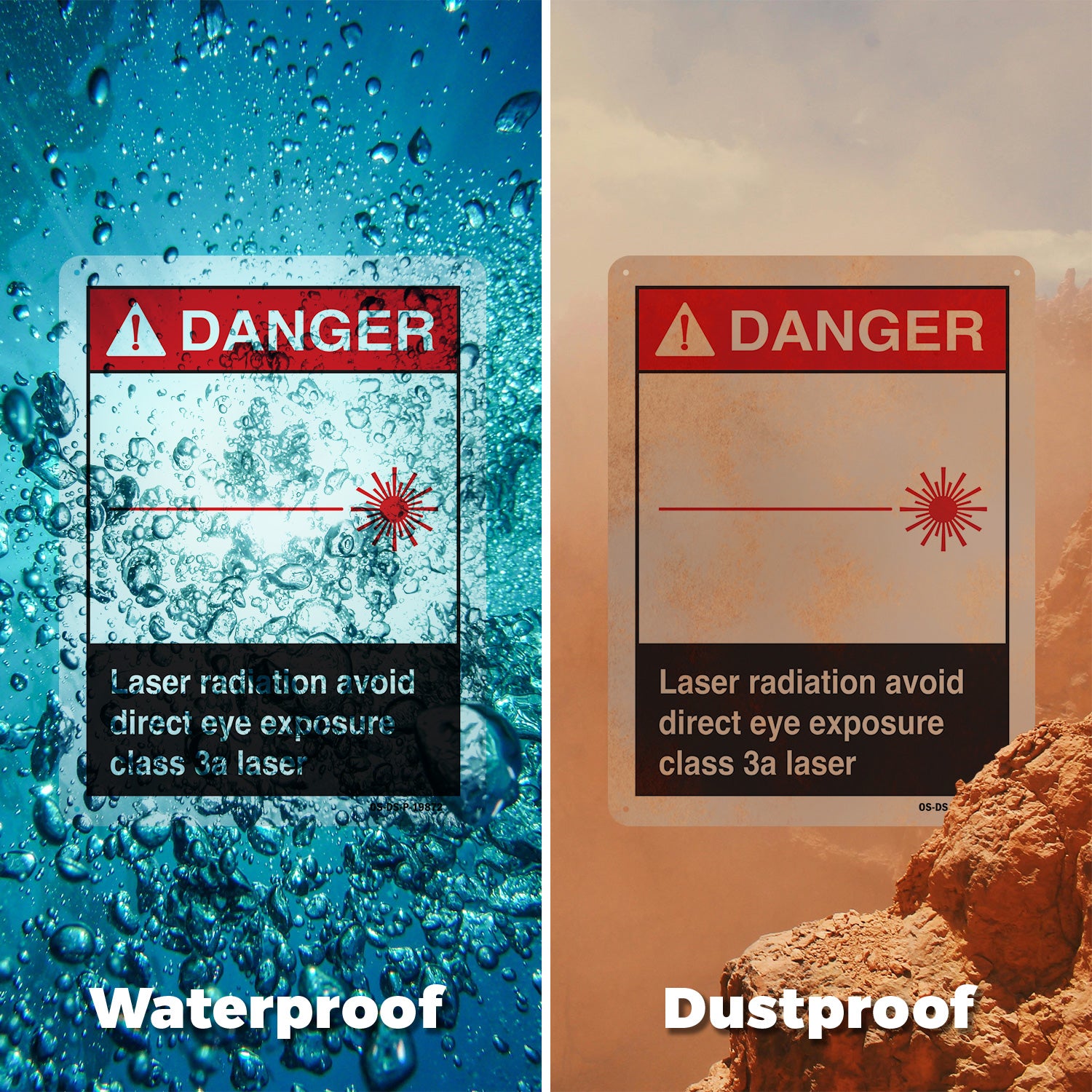A working OSHA/ANSI safety sign that reads clean at distance and holds up outside. Header colors and signal words follow Z535 standards. High contrast. No glare.