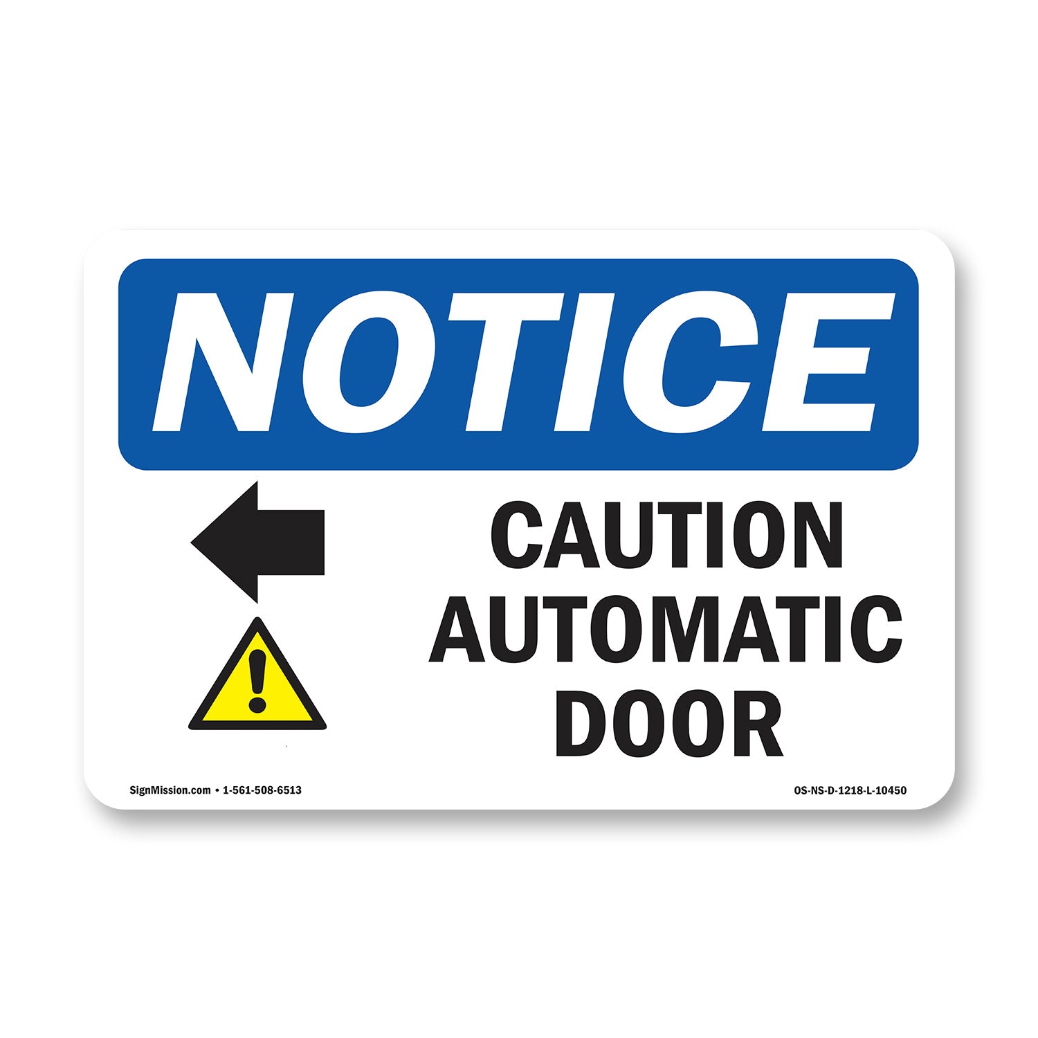 ![Caution Automatic Door [Left Arrow]](http://signmission.com/cdn/shop/files/OS-NS-10450.jpg?v=1758739740&width=1214)