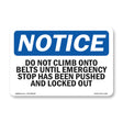 Do Not Climb Onto Belts Until Emergency
