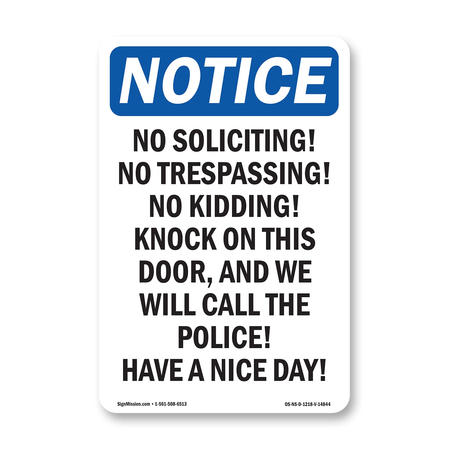 No Soliciting! No Trespassing! No Kidding!