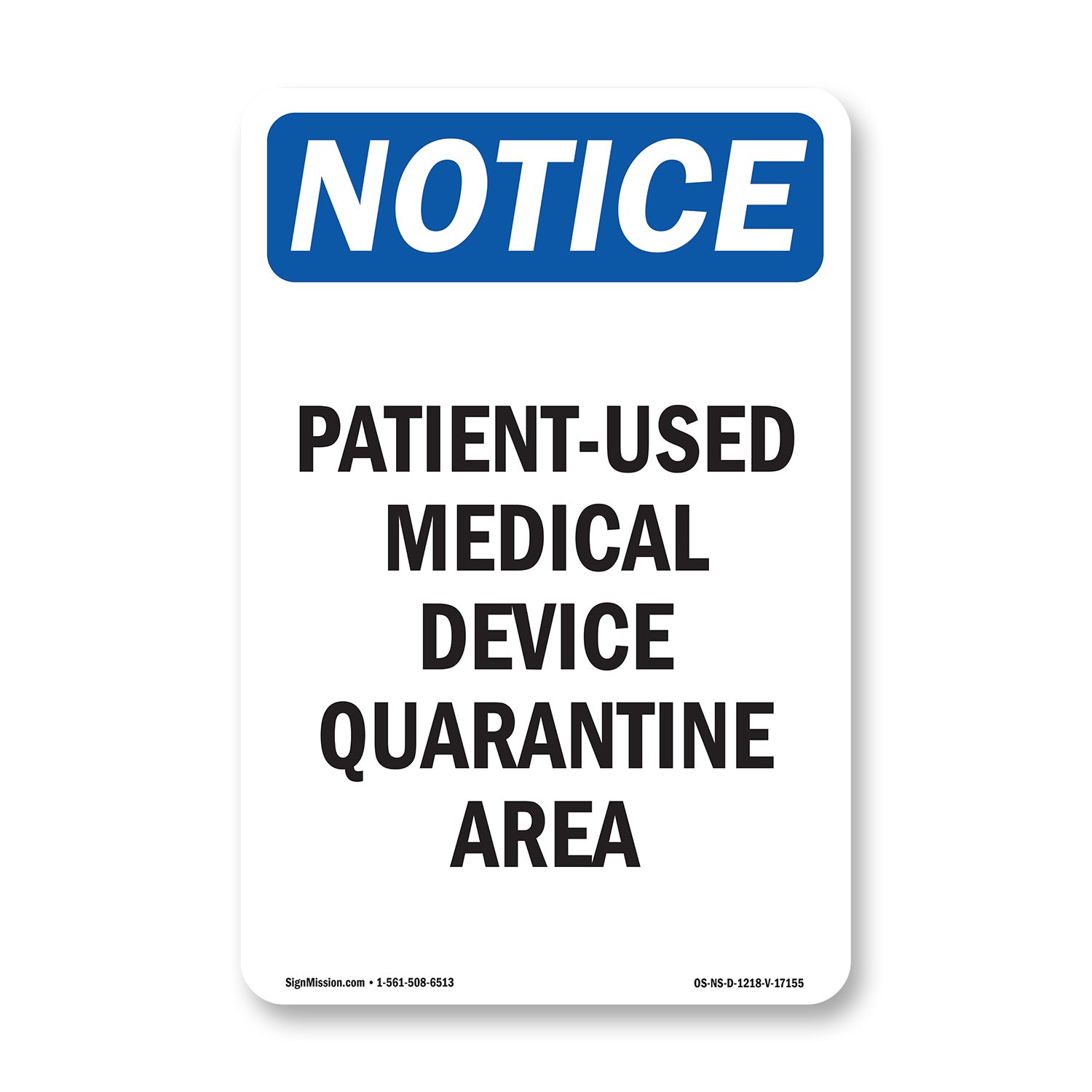 Patient-Used Medical Device Quarantine Area Sign