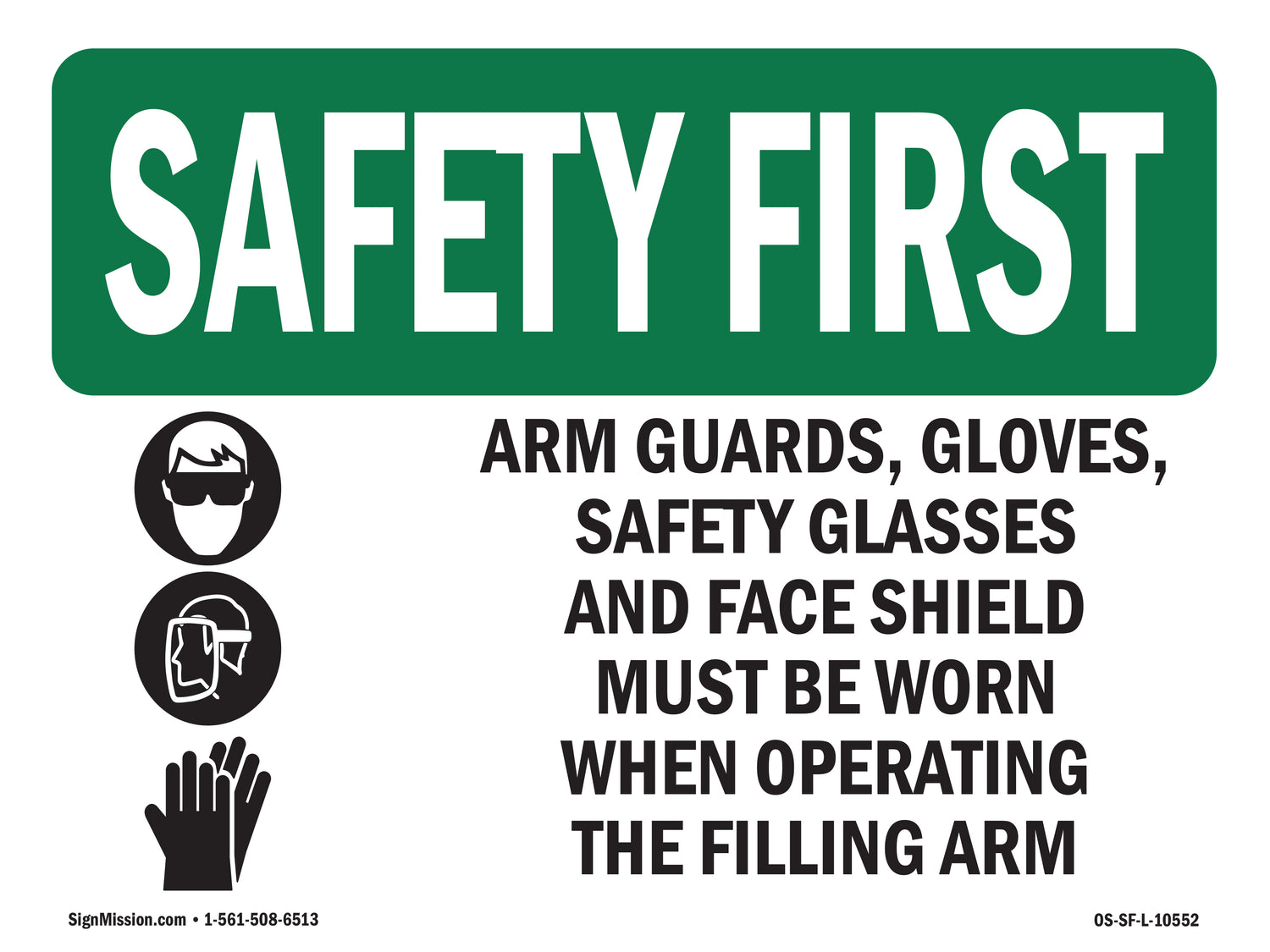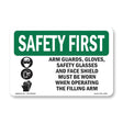 Arm Guards, Gloves, Safety Glasses With Symbol