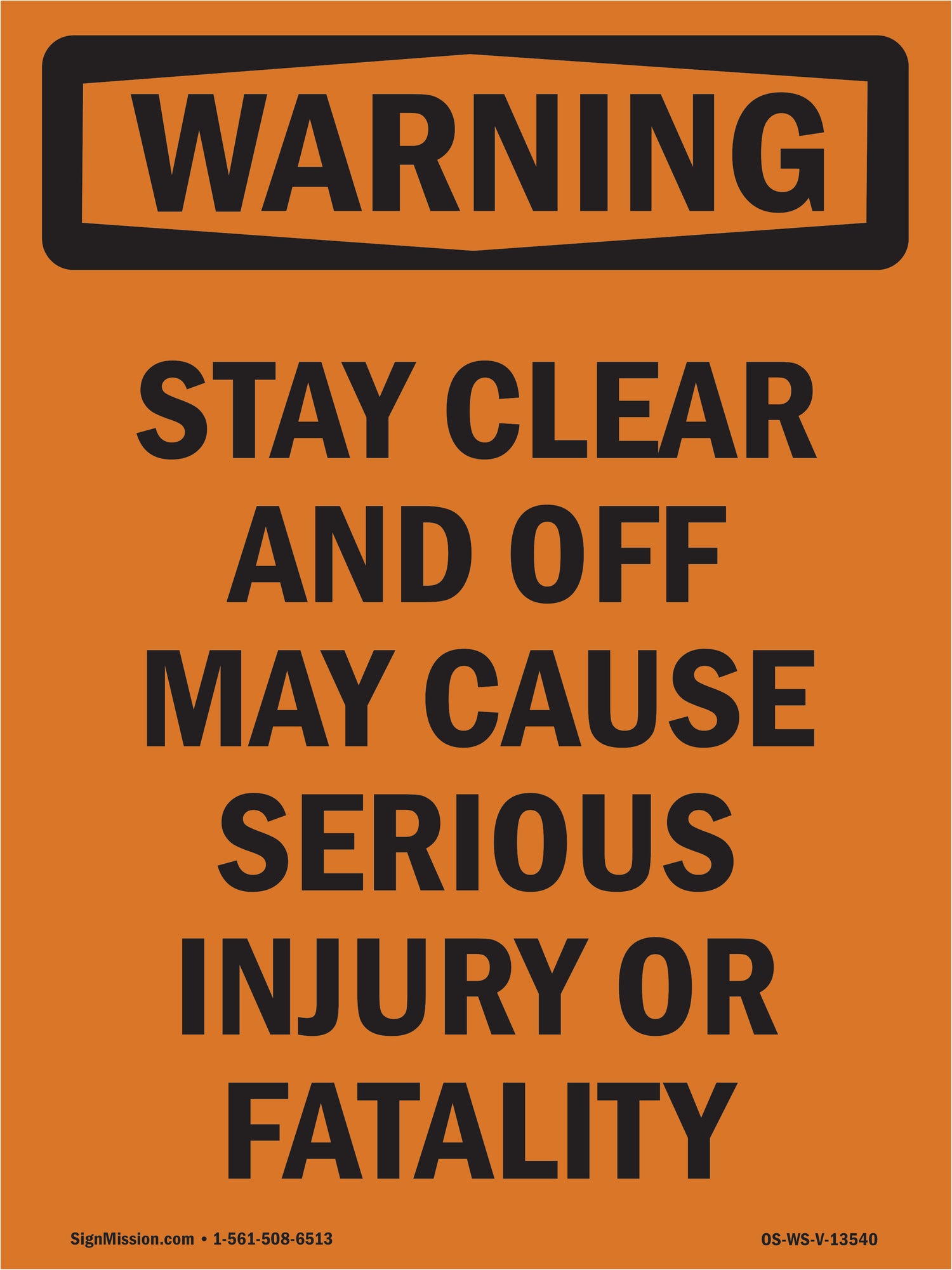 A working OSHA/ANSI safety sign that reads clean at distance and holds up outside. Header colors and signal words follow Z535 standards. High contrast. No glare.