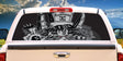 This See Through Window film allows you to customize the rear window of your vehicle. Graphics are visible from the outside and see thru from the inside. All images are printed using outdoor top quality fade proof inks, which provide long term durability. Exterior mounted images will fit most full size pickups and full size SUV's including those with sliders and rear wipers. The size of the graphic can be trimmed to fit smaller rear windows or side window applications. Please be sure to measure your window prior to ordering. All graphics are proudly made in the USA and have a 3 year outdoor durability. These graphics are easy to apply and safe to remove in just minutes. View thru window graphics do not fade and crack or damage your vehicle in any way. Graphics are applied to the outside of the glass so window tint does not cause a problem.