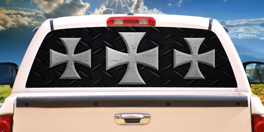 This See Through Window film allows you to customize the rear window of your vehicle. Graphics are visible from the outside and see thru from the inside. All images are printed using outdoor top quality fade proof inks, which provide long term durability. Exterior mounted images will fit most full size pickups and full size SUV's including those with sliders and rear wipers. The size of the graphic can be trimmed to fit smaller rear windows or side window applications. Please be sure to measure your window prior to ordering. All graphics are proudly made in the USA and have a 3 year outdoor durability. These graphics are easy to apply and safe to remove in just minutes. View thru window graphics do not fade and crack or damage your vehicle in any way. Graphics are applied to the outside of the glass so window tint does not cause a problem.
