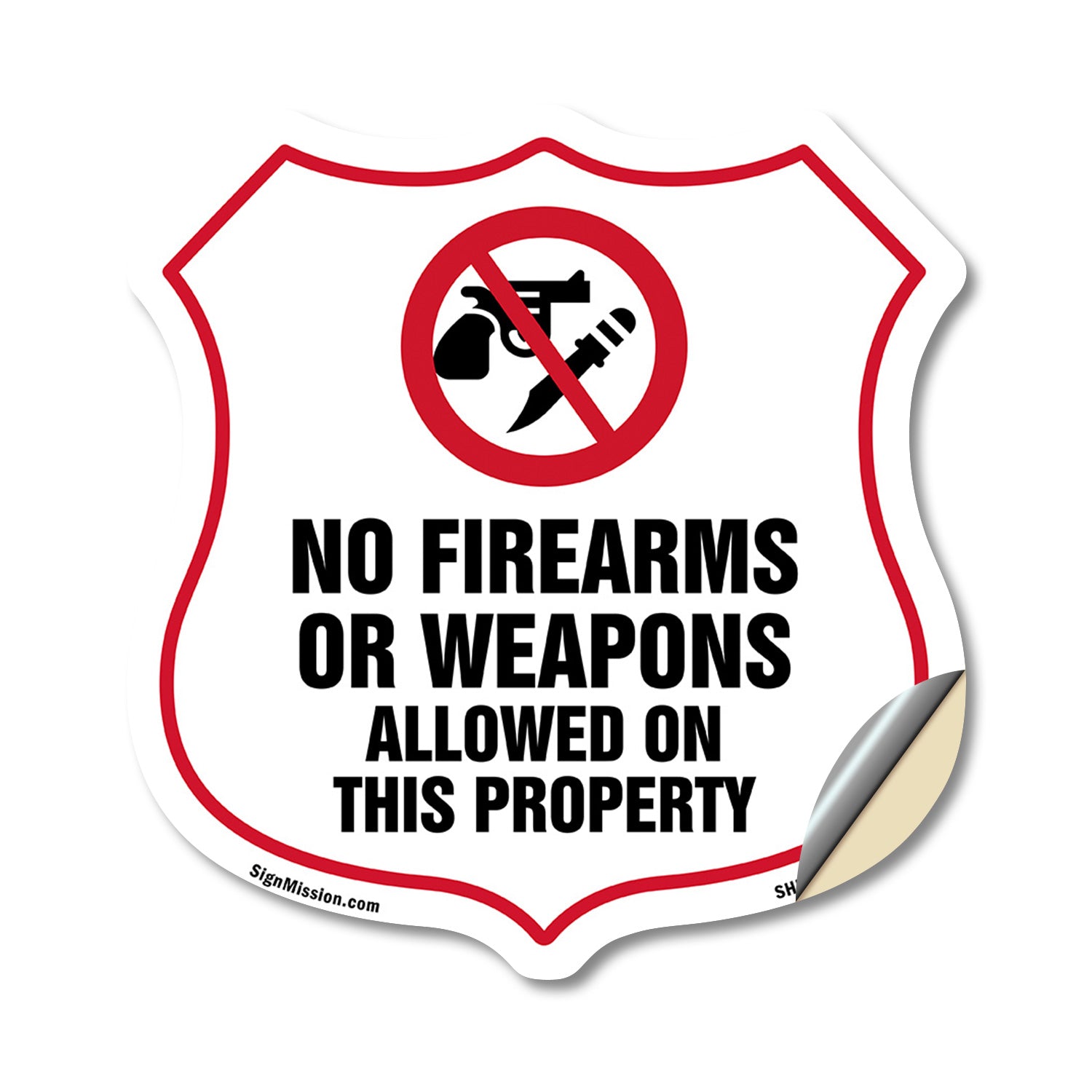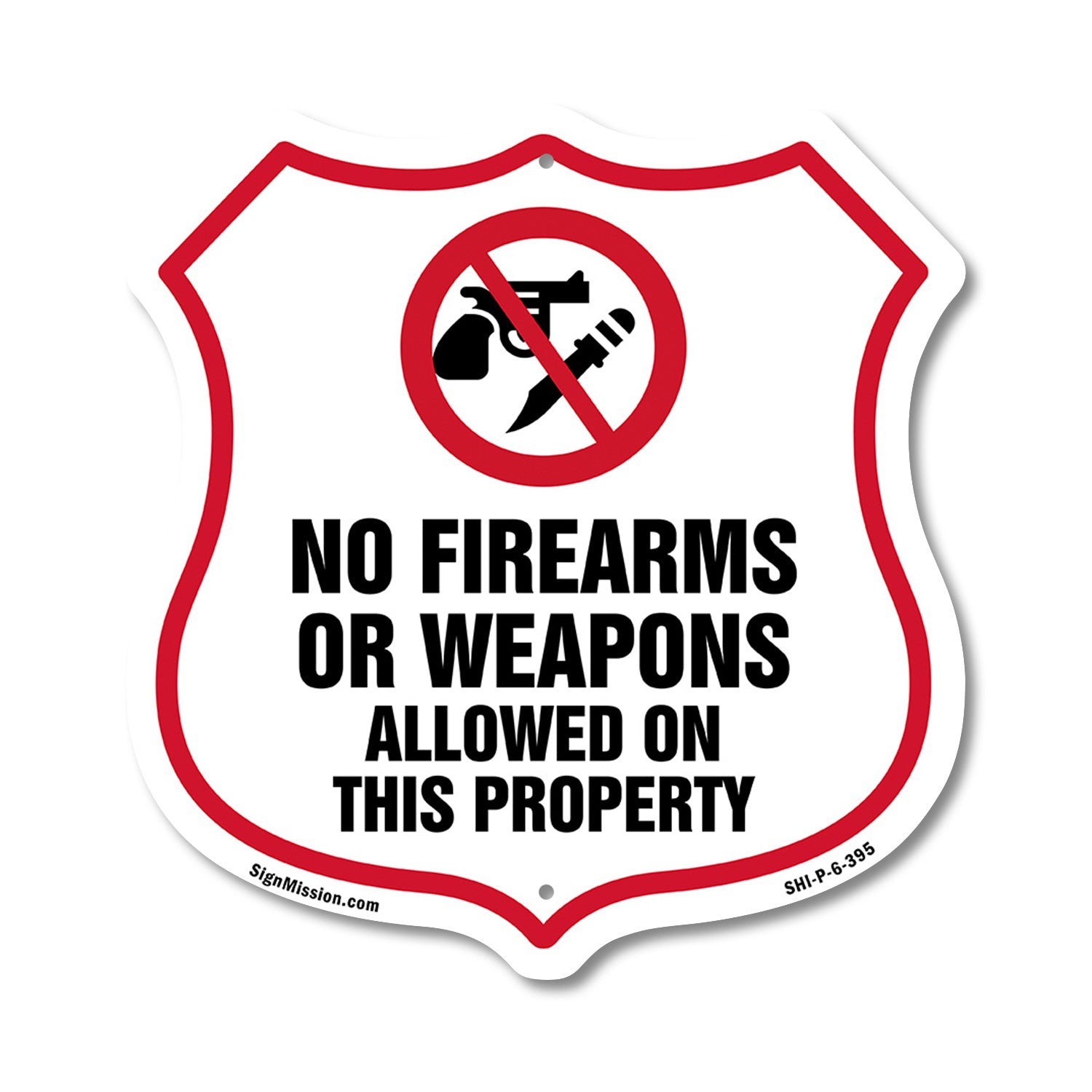No Guns Shield Sign No Firearms Or Weapons Allowed On This Property - Plastic Sign / 6 inch X 6 inch / Sign Only is backordered and will ship as soon as it is back in stock.