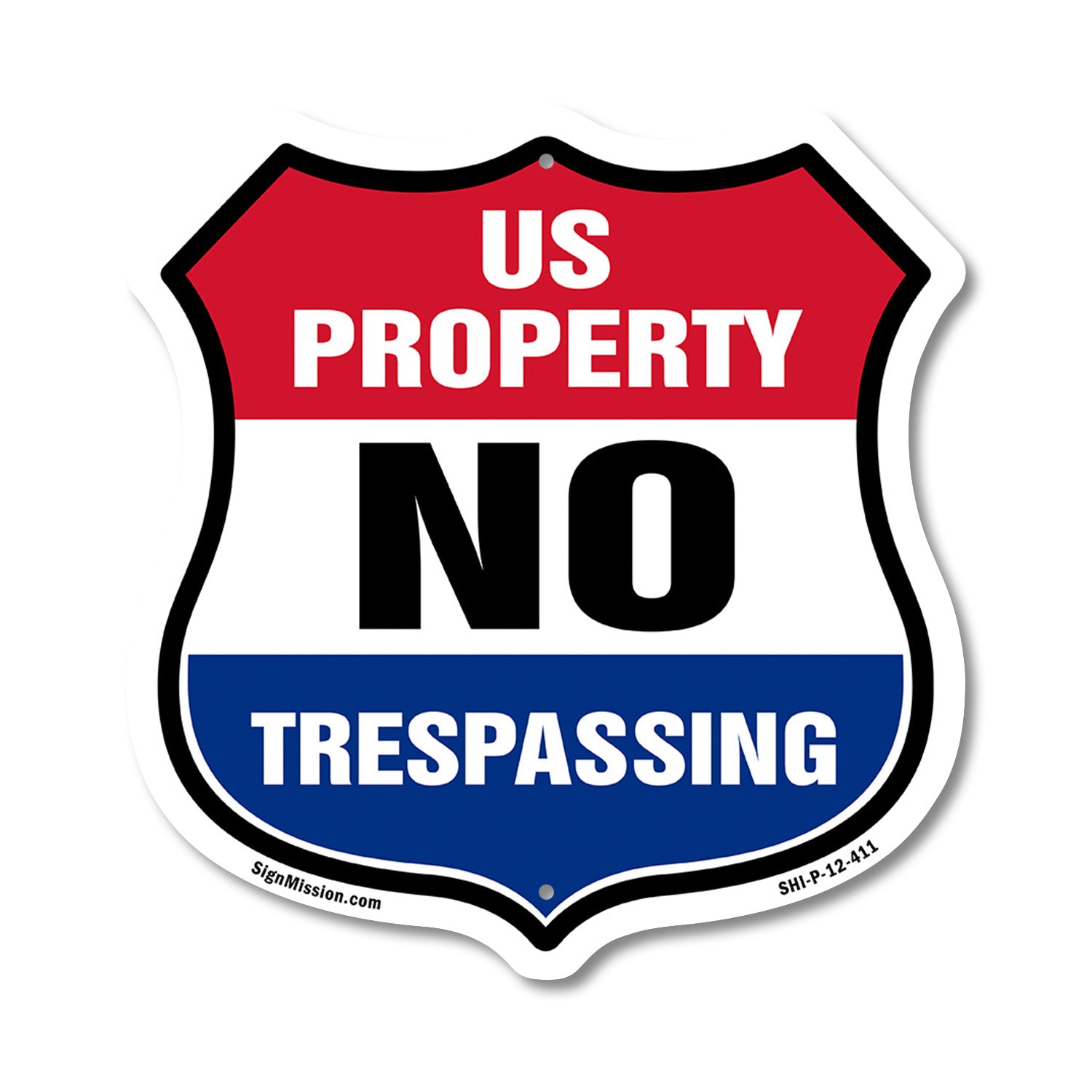 No Trespassing Shield Sign U.S. Property No Trespassing
