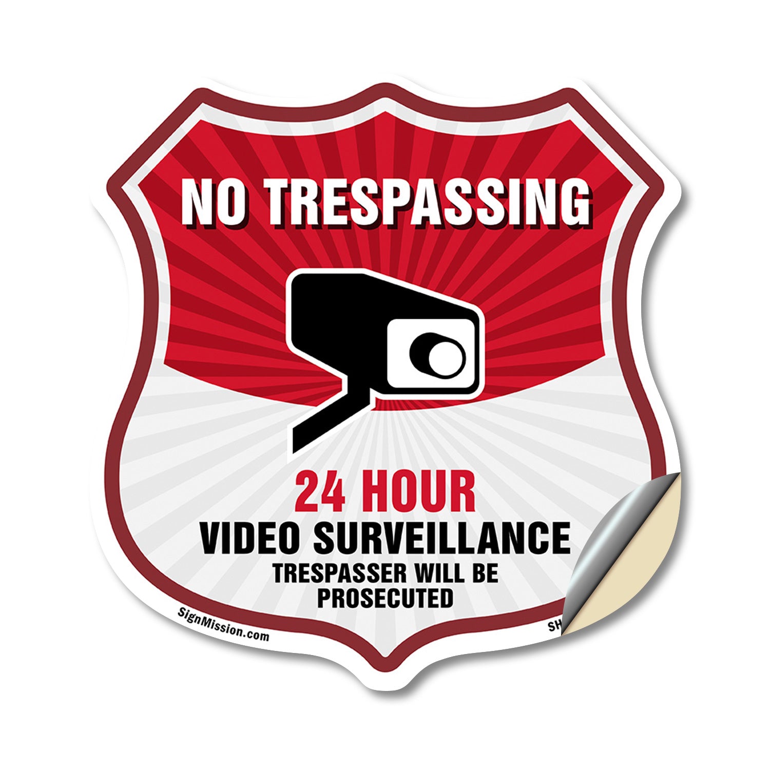 No Trespassing Shield Sign 24 Hour Video Surveillance Trespassers Will Be Prosecuted