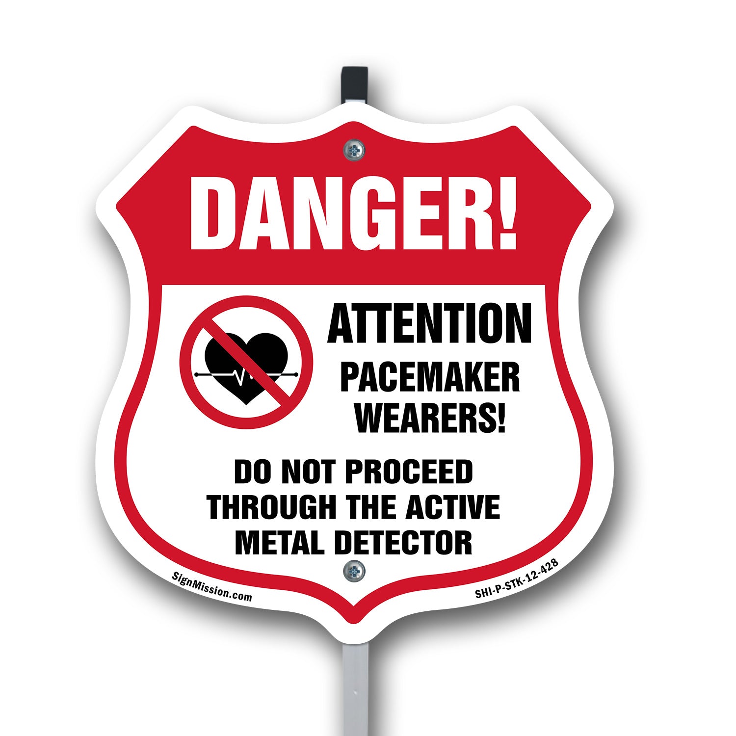Pacemaker Wearers Danger! Attention Pacemaker Wearers. Do Not Proceed Through The Active Metal Detector - Plastic Sign / 6 inch X 6 inch / Sign Only is backordered and will ship as soon as it is back in stock.