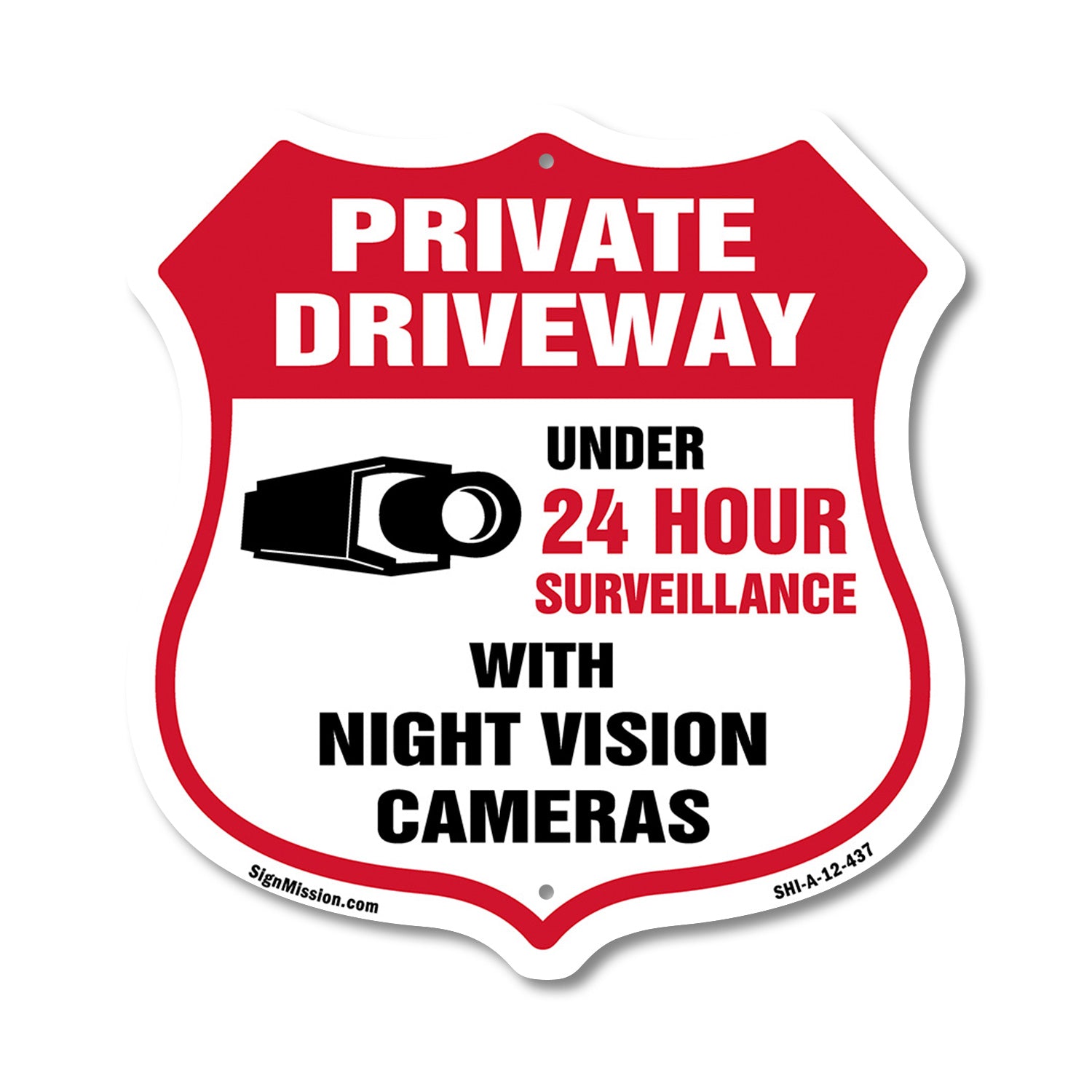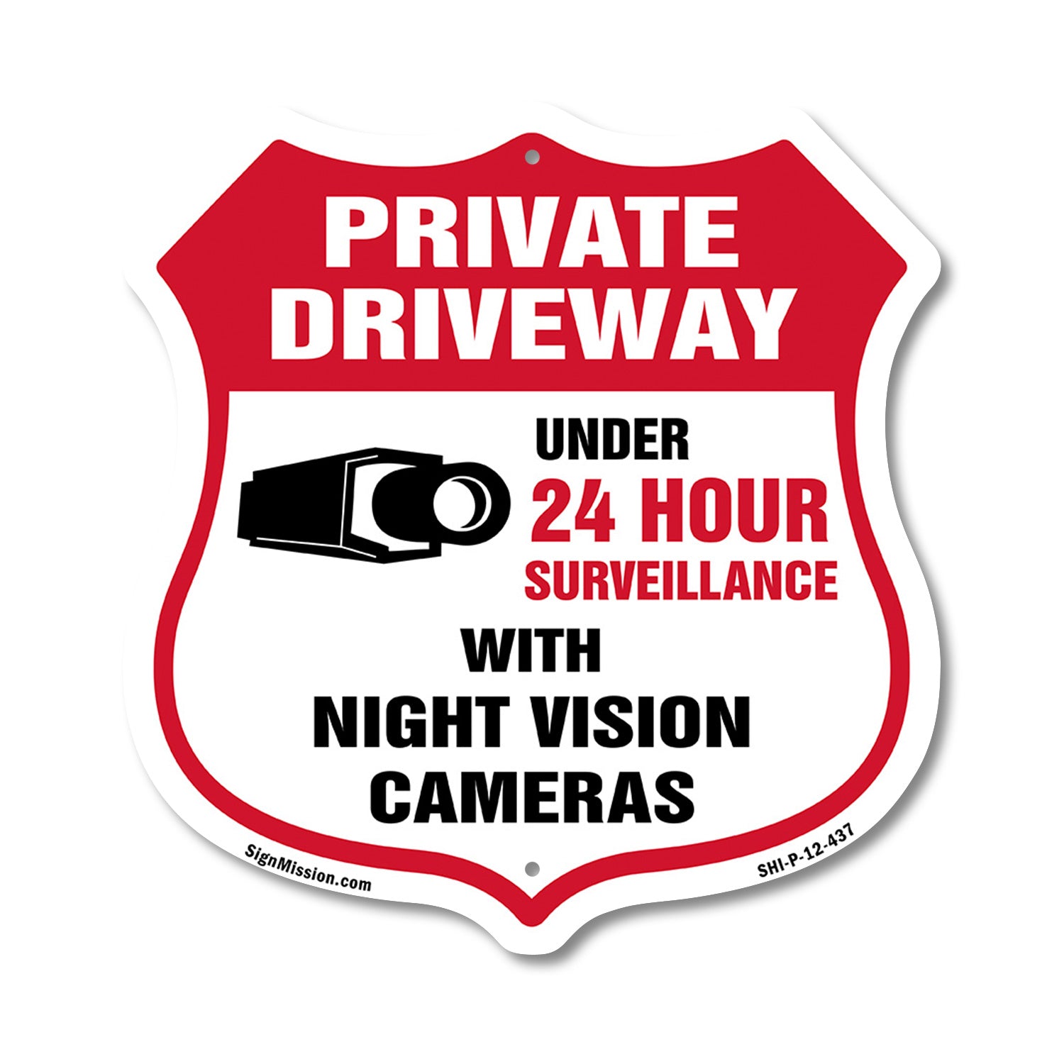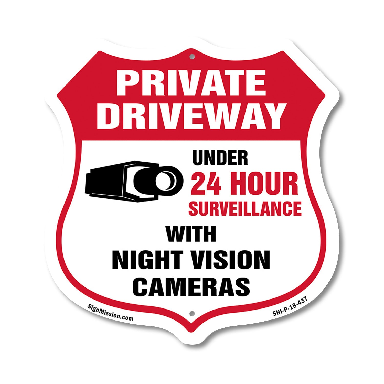 Private Driveway Shield Sign Under 24 Hour Video Surveillance By Night Vision Cameras