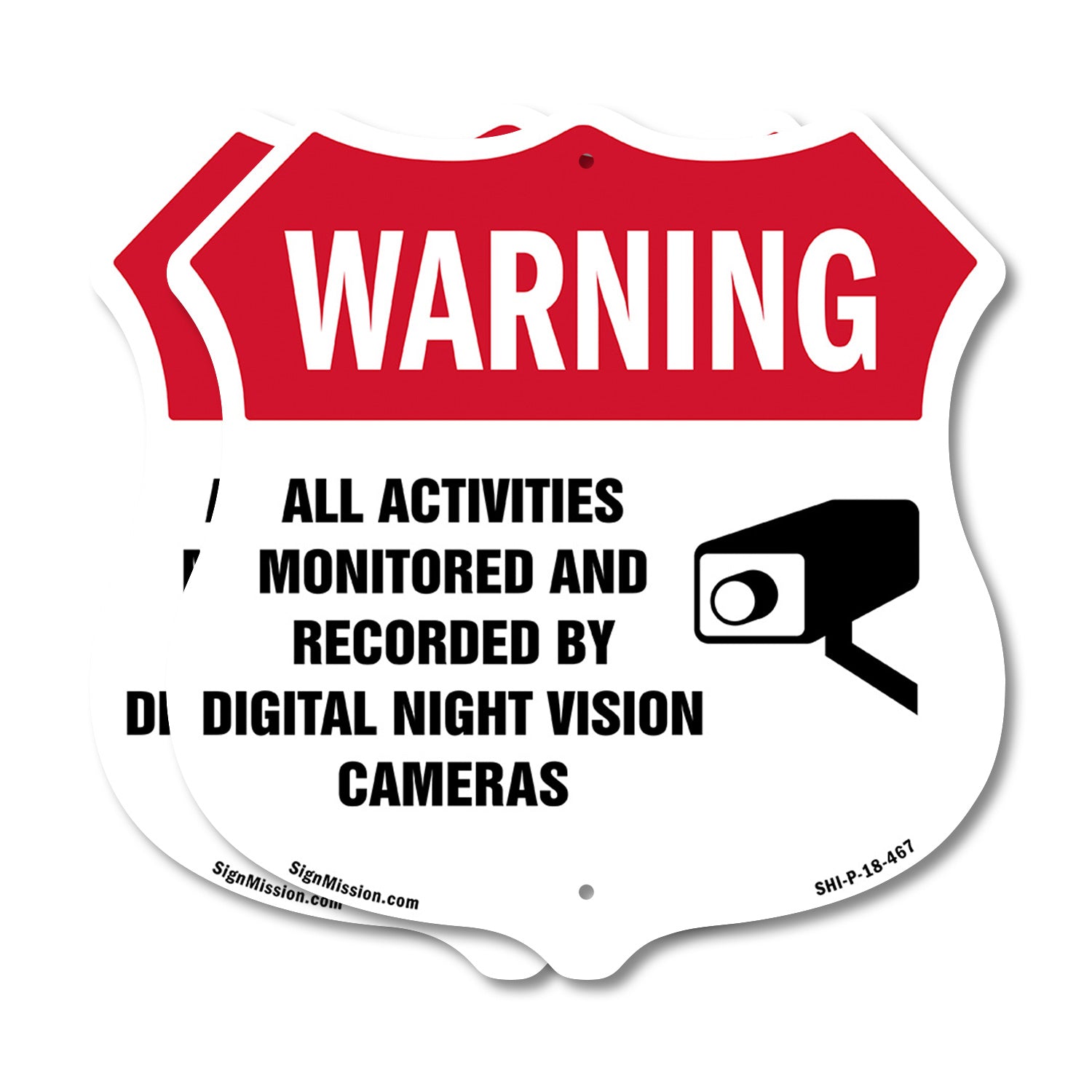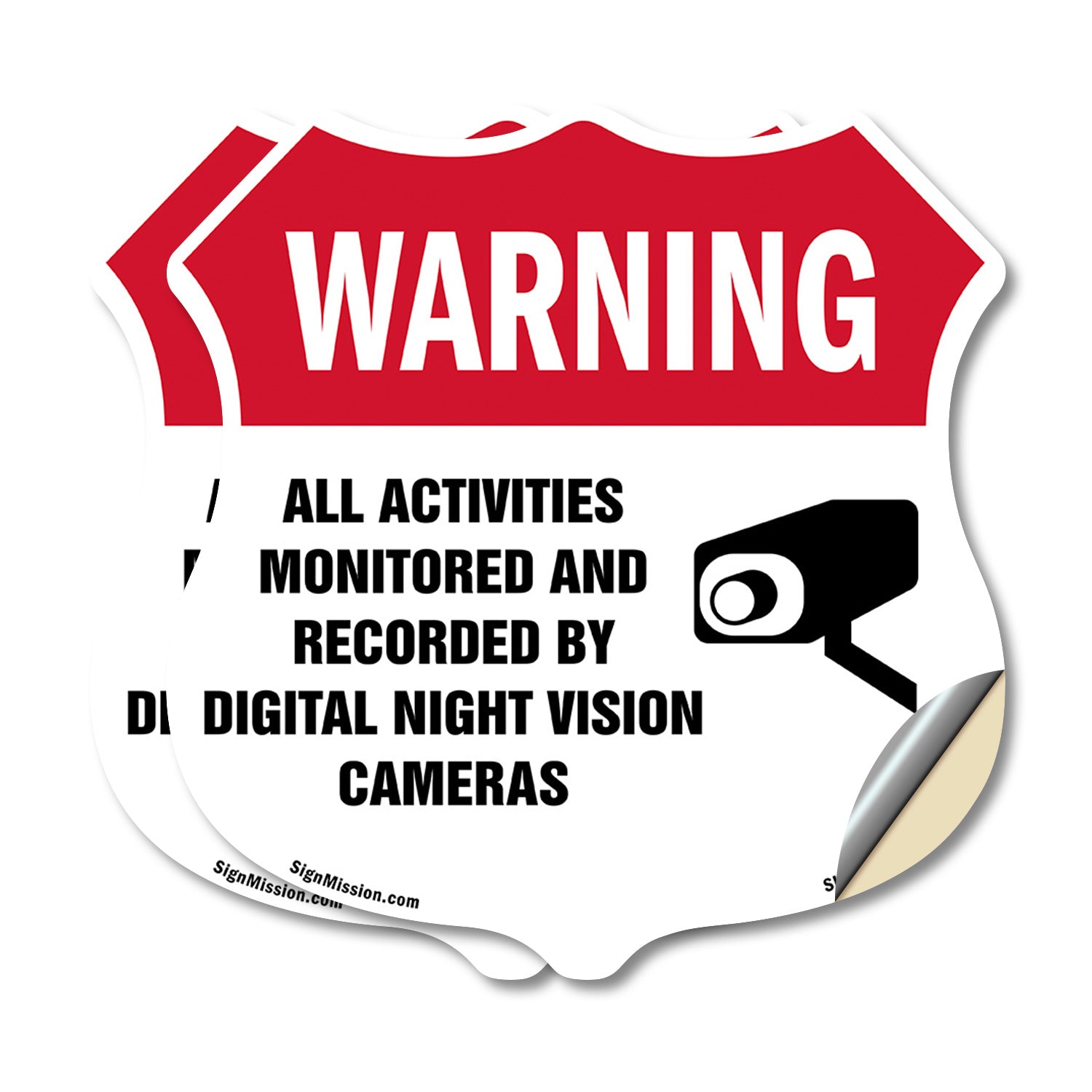 Video Surveillance Shield Label Set Warning All Activities Monitored And Recorded By Digital Night Vision Cameras - Plastic Sign / 6 inch X 6 inch is backordered and will ship as soon as it is back in stock.