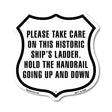 Please Take Care On This Historic Ships Ladder Hold The Handrail Going Up And Down - Plastic Sign / 6 inch X 6 inch / Sign Only is backordered and will ship as soon as it is back in stock.