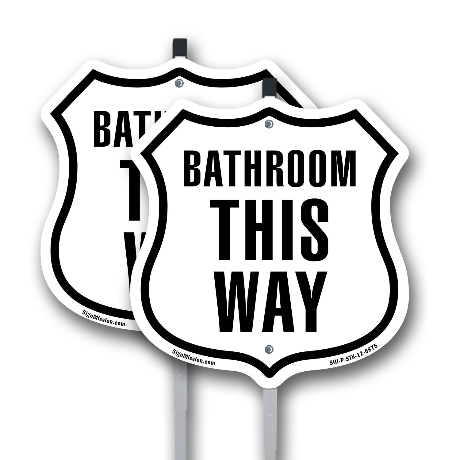 For 12-inch aluminum and plastic signs only, an optional 28-inch all-metal stake is available for a clean, professional installation. The stake comes in two separate pieces and includes a metal connector to join them. Assembly is quick, requires no tools, and locks firmly into place — built to stay put and stand strong for years to come in any environment.