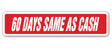 60 DAYS SAME AS CASH Street Sign
