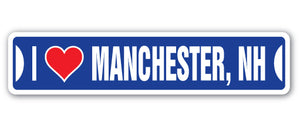 I LOVE MANCHESTER, NEW HAMPSHIRE Street Sign